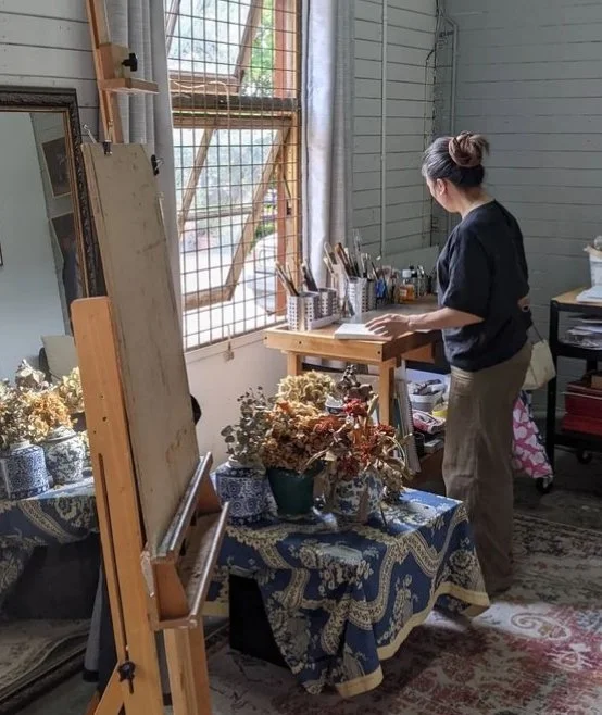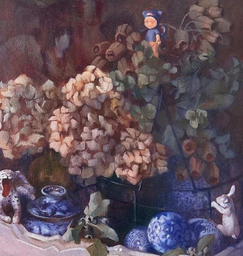 A principal theme in Purple’s work is ‘the ways of seeing’ - this is a deep dive into how she perceives the world coloured by family, immigration, loss and healing from prolonged sadness. She is also passionate about experimenting with different mediums. Cultural diversity shows in her art, especially in still-life settings, by showing objects from home. In 2024, she was selected as a finalist in Lethbridge Gallery’s Small Scale Art Award for ‘Poetic Nonsense’ - small oil paintings of miscellaneous objects.