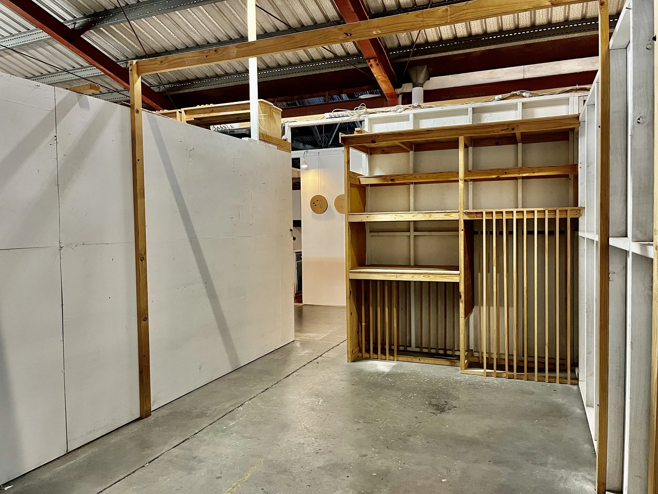 All studios enjoy an impressive warehouse height ceiling expanse. Each studio is a little different regarding built in storage and position within the building.